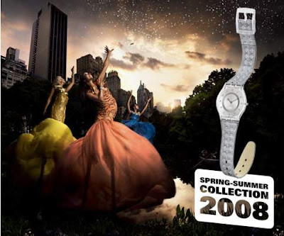 One of the Swatch spring/summer ad campaign imitates the Beatles' Abbey road album cover. The ad pictures four ladies in girlie minidresses and shorts that are walking along the road.